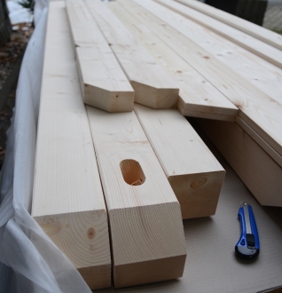 Das Material für das neue Vordach wird ohne Mängel geliefert und wartet auf die nächsten Arbeitsschritte.