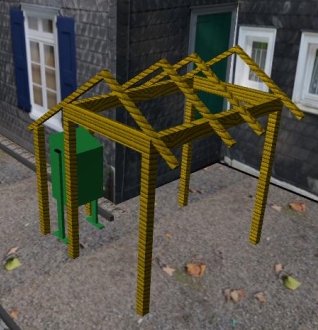 Die Hütte wird entlang der Hausecke geplant, so dass der Paketkasten gut erreichbar ist, aber gleichzeitig nicht zu aufdringlich wirkt.