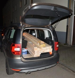 Das notwendige Baumaterial wird samt Werkzeug im Transportfahrzeug verklappt und an den Projektort verbracht.
