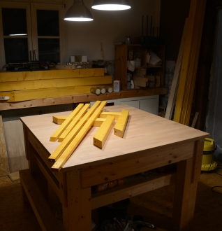 Im neuen Domizil sollte es auf jeden Fall eine Werkstatt geben. Dementsprechend muss auch ein Werktisch her (aus Holz vom alten Hochbett).