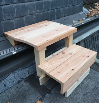Für Instandhaltungsarbeiten am Dach musste aus zugangstechnischen Gründen eine kleine Hilfstreppe gebaut werden. Da dies bereits kurz nach dem Einzug der Fall war, musste aber zunächst ein ordentlicher Werktisch gebaut werden. Diese verdammten Abhängigkeiten.