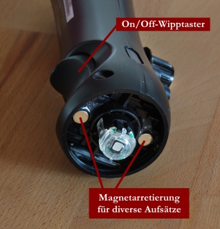 Der Wipptaster wird für die Flashfunktion an- gepasst und für den Aufsatzwechsel kommen zwei Magnete ins Spiel.